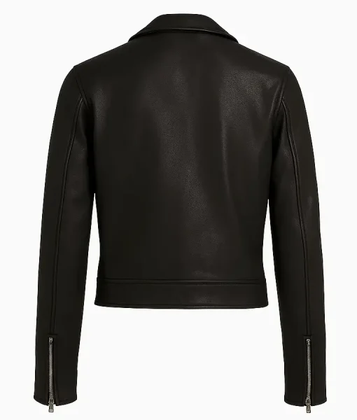 Movie My Secret Santa Alexandra Breckenridge Black Moto Cropped Leather Jacket