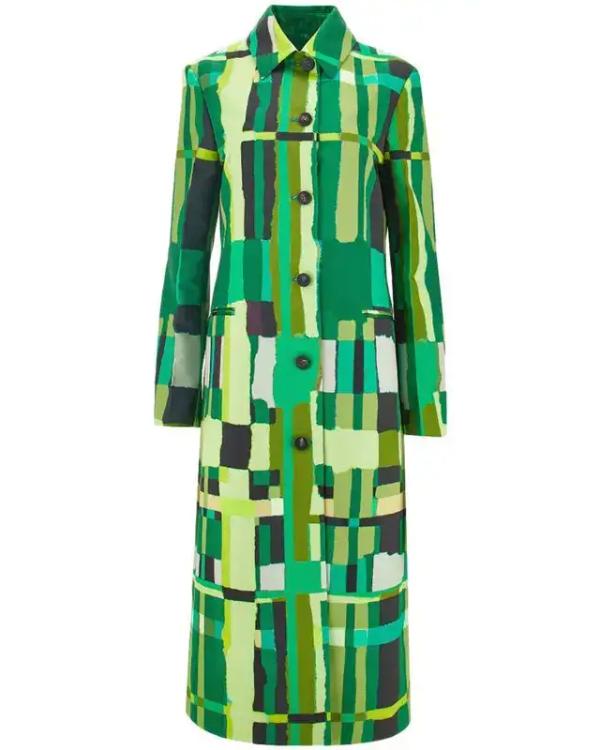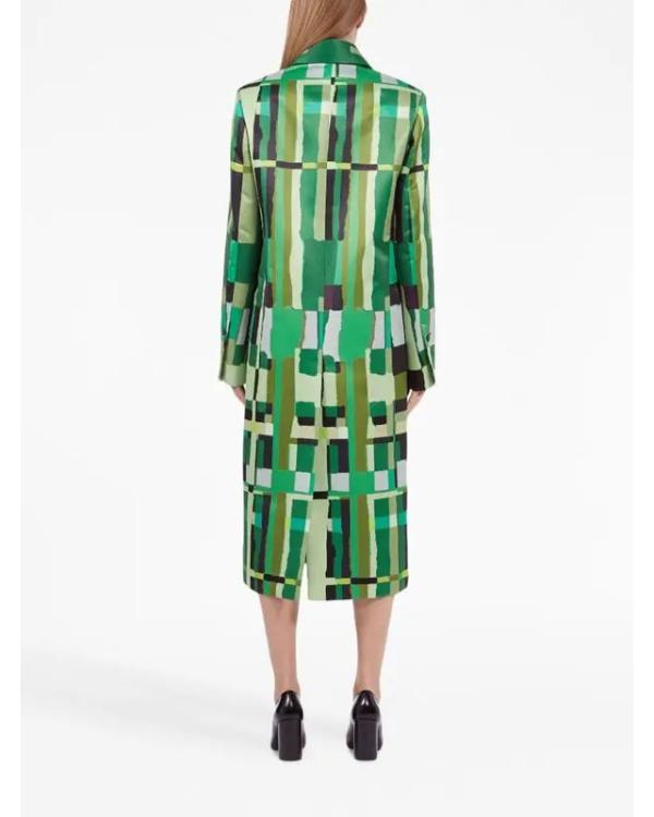 Carrie Preston Elsbeth Season 03 Green Abstract Print Long Coat