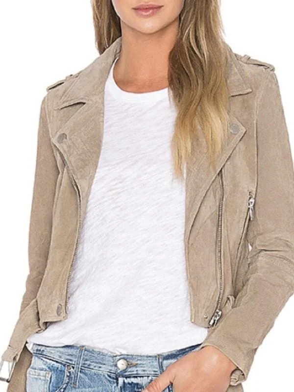Bella Heathcote Tulsa King 2025 Cleo Montague Brown Suede Leather Jacket combines the best craftsmanship with the soft and durable suede leather, making it very comfortable to wear. Its inner lining is made of viscose which makes it soft on the inside, making it easy to wear all day. The zipper and belted opening offer styling flexibility to provide a secure, polished fit. A lapel collar adds to its sharpness, and convenient pockets on the front and inside do not take away the elegance. Its elegant design is finished with long sleeves with zipper cuffs, and it is appropriate to wear with many layers. This brown color is very cozy and fits all seasons with ease.