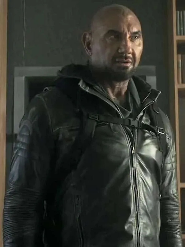 Jake Afterburn Movie 2025 Dave Bautista Black Leather Jacket