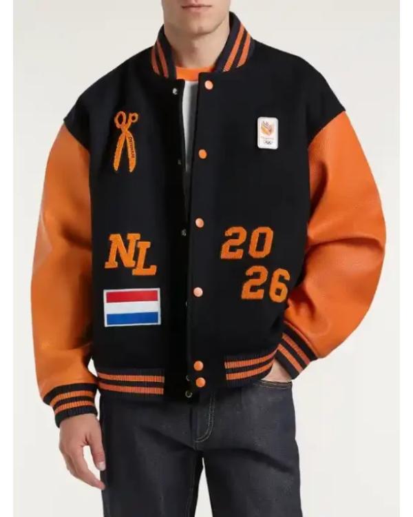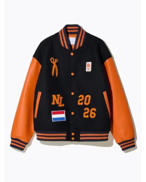 Recreation – Denham Team Netherlands 2026 Orange Black Varsity Jacket