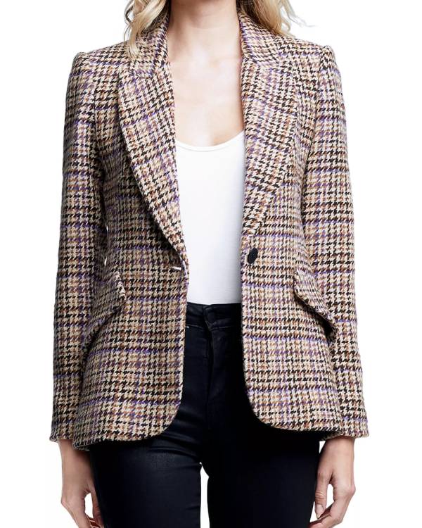 Emilia Clarke Ponies Season 01 2026 Tweed Plaid Beige Blazer