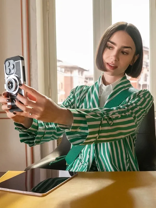 Emily in Paris Season 05 Lily Collins Green Striped Jacket