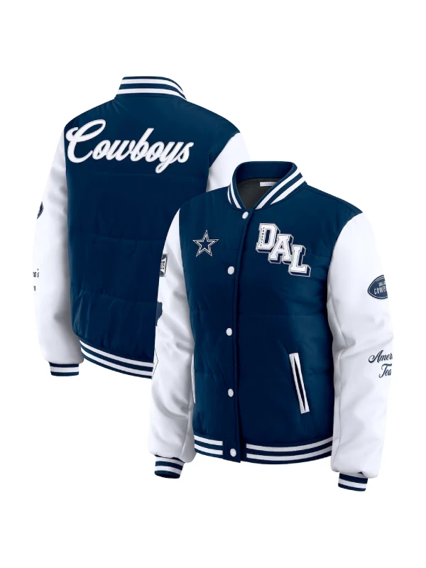 Recreation – Dallas Cowboys WEAR by Erin Andrews Women’s Navy Varsity Full-Snap Puffer Jacket