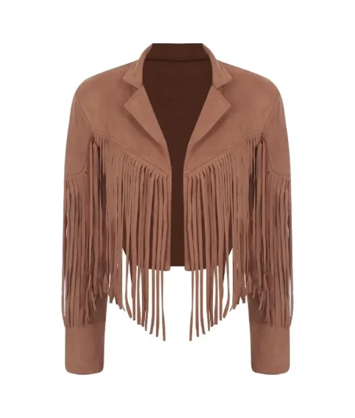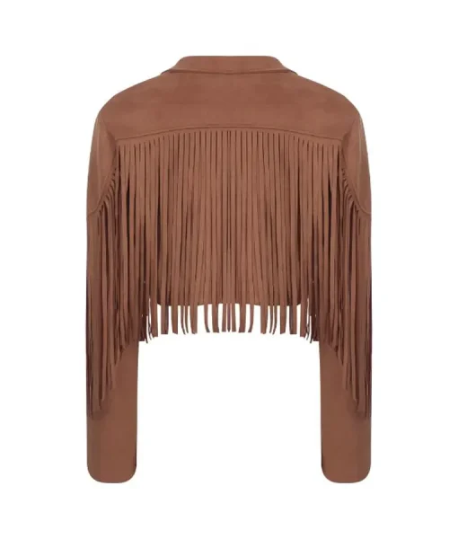 TV Series Finding Mr Christmas Season 02 Melissa Peterson Brown Suede Cropped Fringe Jacket