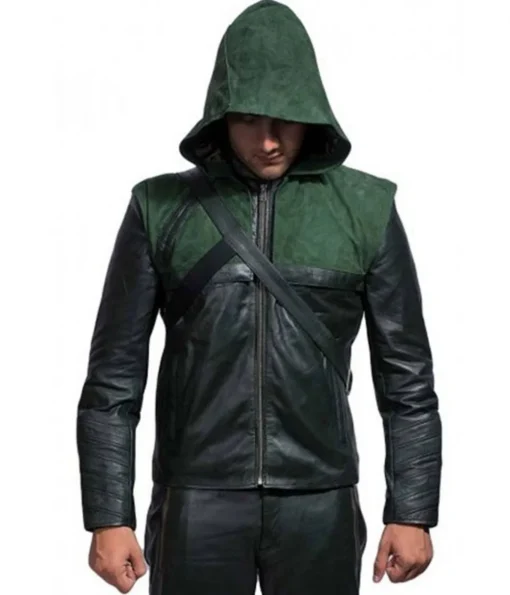 Green Arrow Stephen Amell Hooded Leather Jacket