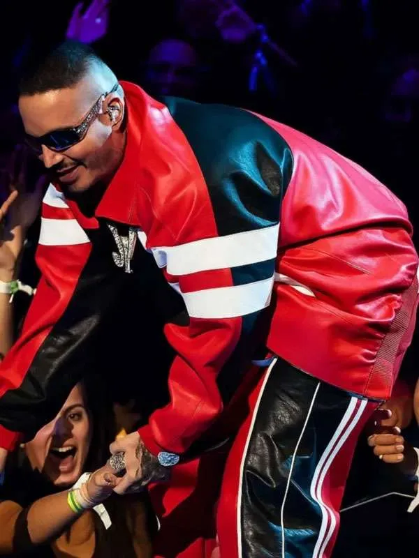 MTV Video Music Awards 2025 J Balvin Red and Black Leather Jacket