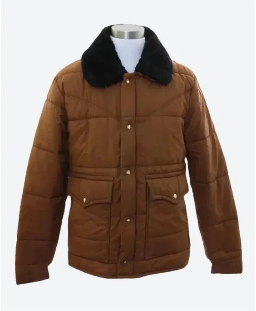 Stranger Things Season 05 Jim Hopper Black Shearling Brown Puffer Jacket