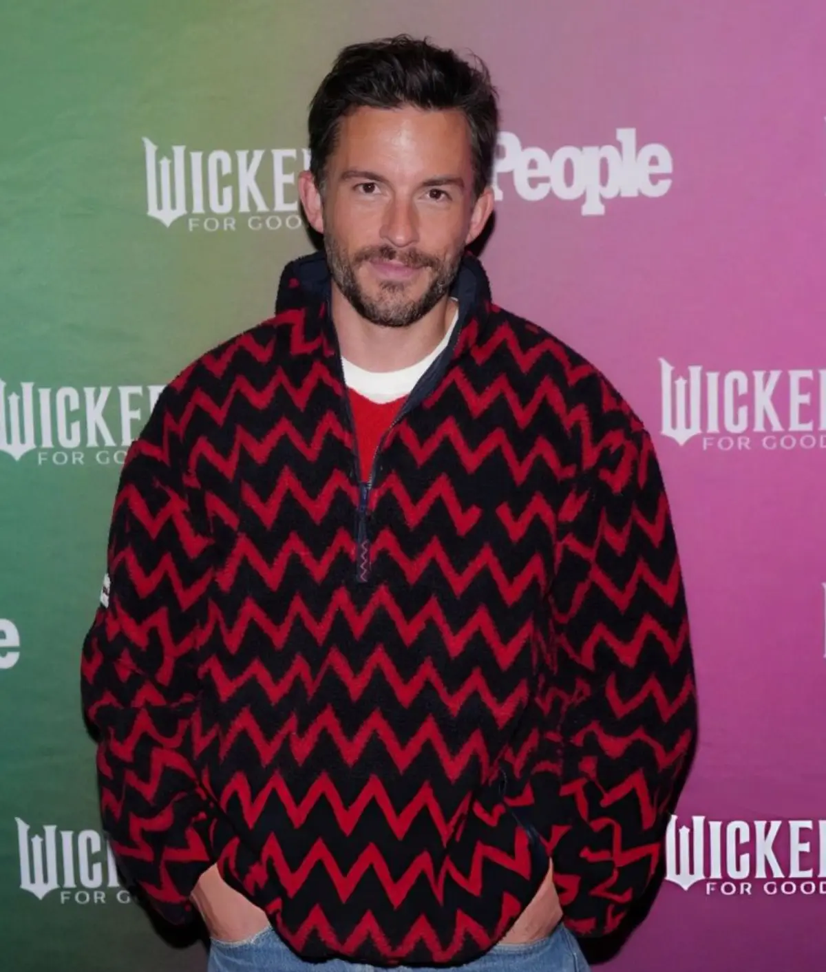 Jonathan Bailey Wicked For Good 2025 Screening Oversized Red And Black Sweatshirt