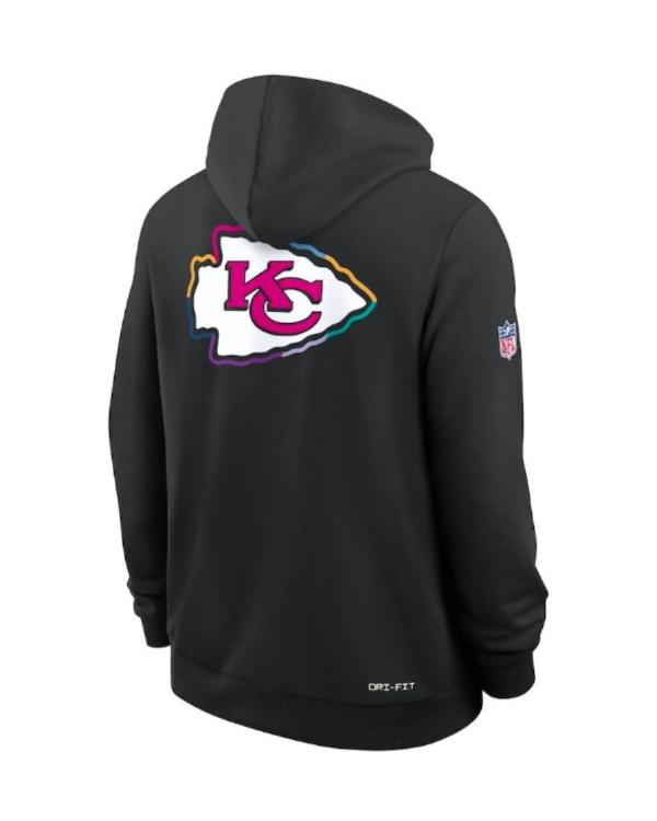 The Kansas City Chiefs Black 2025 Crucial Catch Dri-Fit Hoodie is a comfortable and fashionable hoodie that demonstrates your passion for football. The hoodie is warm and comfortable and can be worn at any time when you are supporting your team. It has a modern and bold appearance because it is designed with a sleek design and catching prints. The supporters of the Kansas City Chiefs wear this hoodie with pride even off the field. One of the most popular football teams in America is the Kansas City Chiefs, which is a renowned NFL team with strong plays and exciting matches.