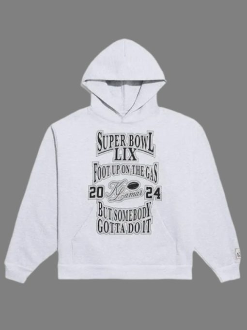 Unisex Kendrick Lamar Grey Super Bowl LIX Foot Up On The Gas Pullover Hoodie – Recreation
