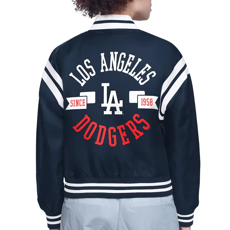 Los Angeles Dodgers Printed Logo Varsity Black Full-Snap Satin Jacket