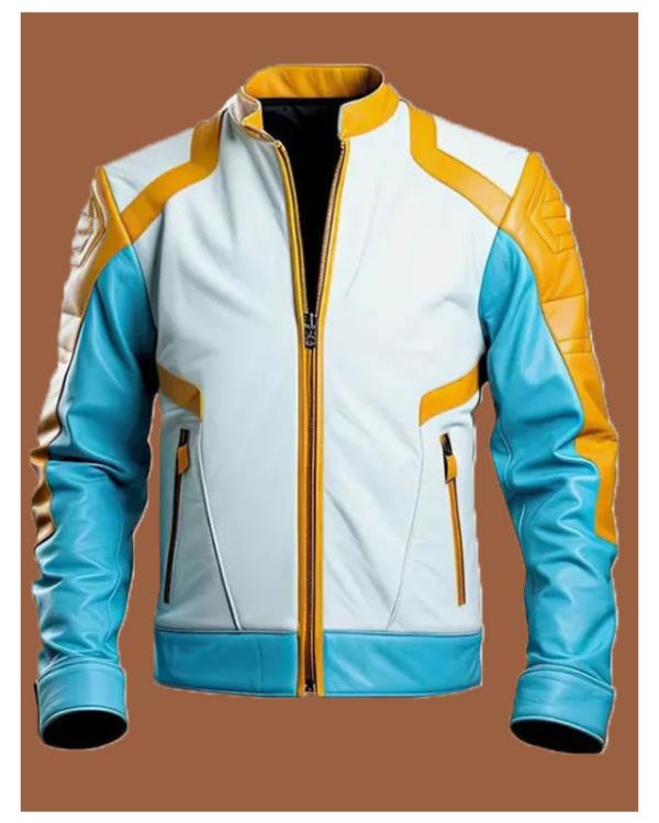 Recreation – Blue White Cafe Men’s Racer Leather Jacket