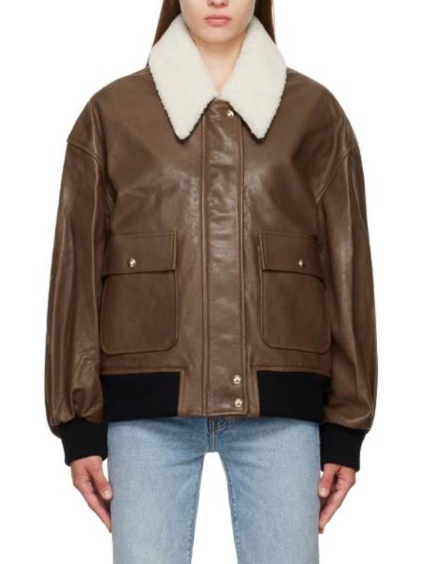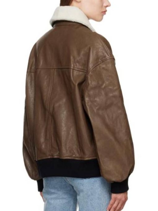 Natasha Lyonne Poker Face S02 Brown Leather Aviator Jacket