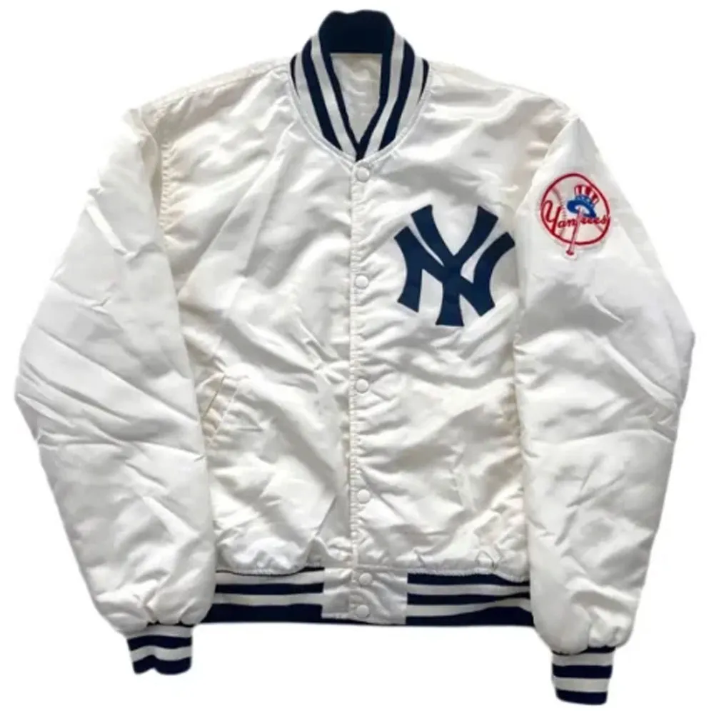 Yankees New York 90s Blue and White Satin Bomber Jacket