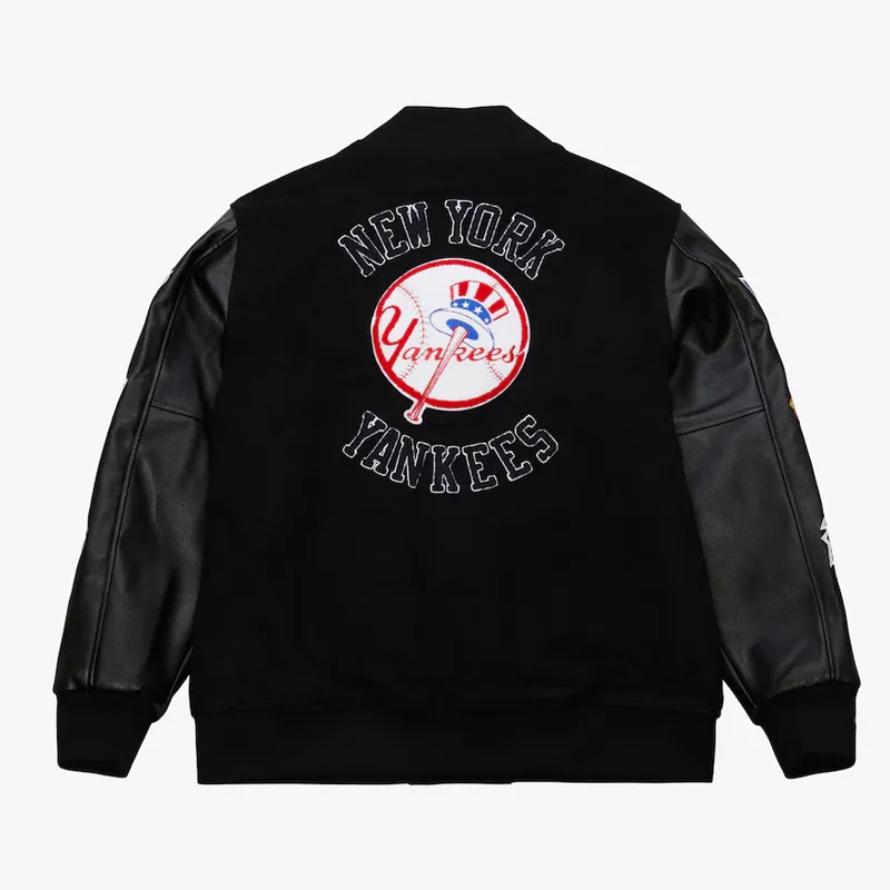 Yankees New York Black Out Full-Snap Wool/Leather Varsity Jacket