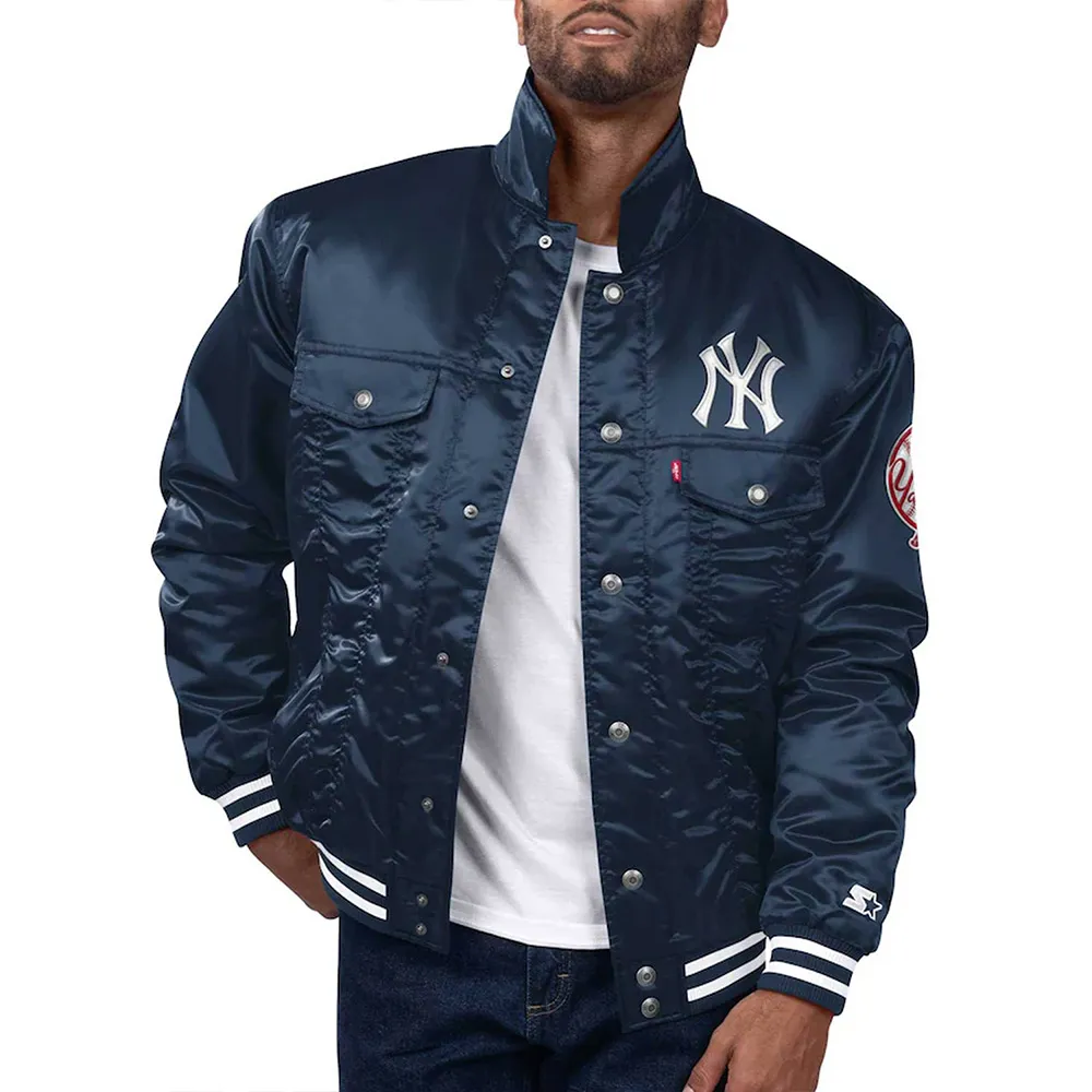 Yankees New York Trucker Full-Snap Navy Satin Jacket