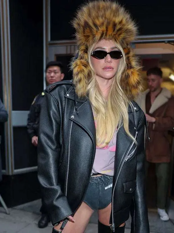 American Singer Kesha Street Style Black Biker Leather Jacket