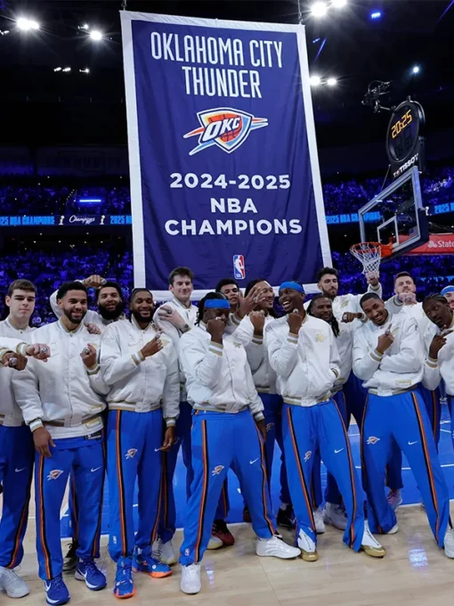 Oklahoma City Thunder Finals Champions 2025 Banner Raising Ceremony White Jacket