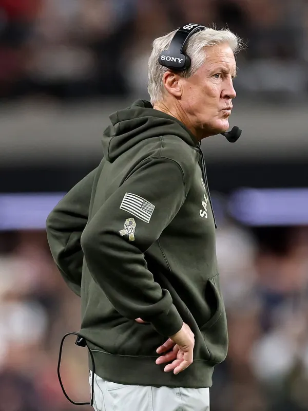 Recreation – Coach Pete Carroll Las Vegas Raiders Salute to Service Black Sideline Olive Green Pullover Hoodie