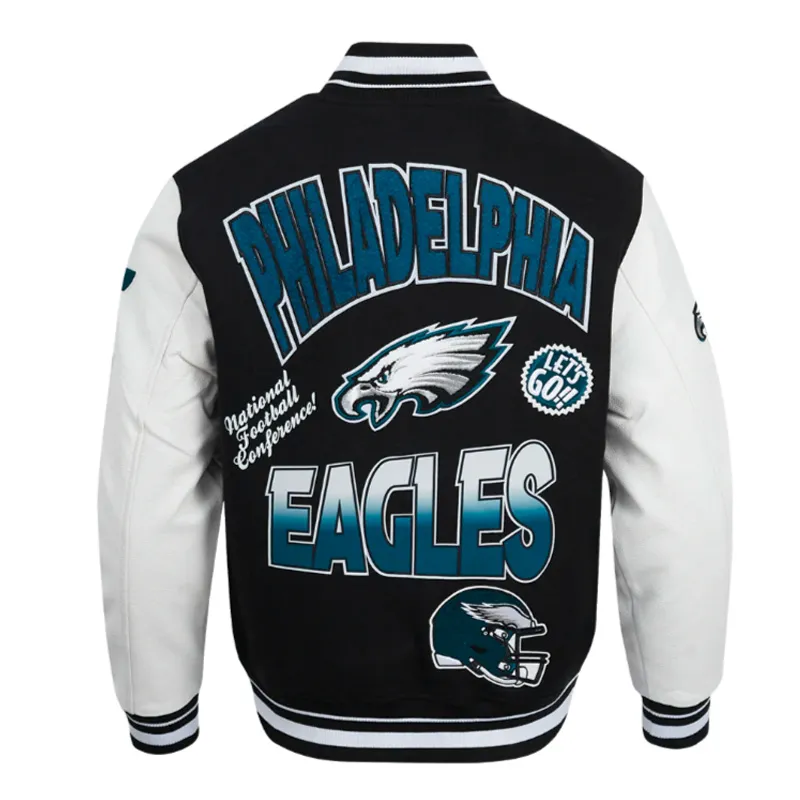 Philadelphia Eagles Turn It Up Varsity Wool/Leather Black and White Jacket