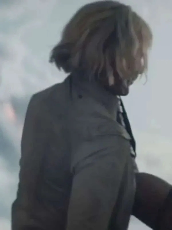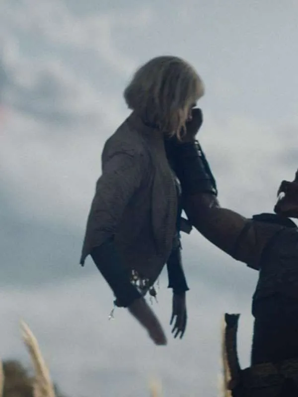 Elle Fanning Predator Badlands 2025 Thia White Leather Jacket