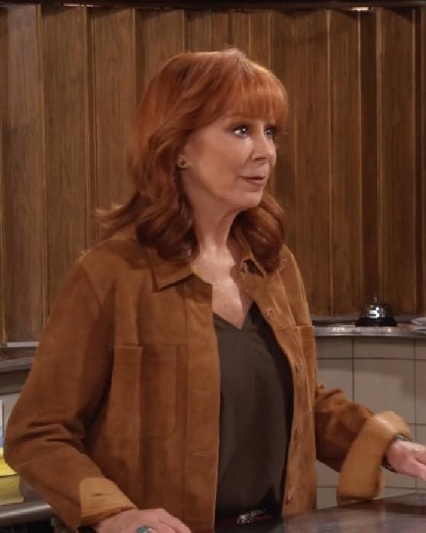 Happys Place Season 02 Reba McEntire Brown Suede Shirt Jacket