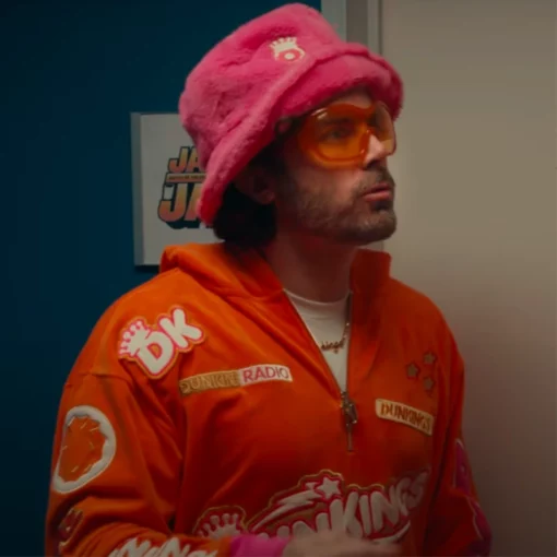Dunkin Donuts Dunkings Casey Affleck Super Bowl LIX Commercial 2025 Orange Track Jacket in a cotton-polyester blend is comfortable and provides long-lasting wear. It is easy to wear and style with a half-zip closure with a casual hooded collar. The knitted cuffs in the rib make it fit tightly so that the sleeves are held. This jacket is styled in a bright orange color that is really eye-catching and is easy to wear on a daily basis. It can be worn with casual attire or worn on its own, and there is a casual yet stylish vibe to it that makes it a versatile piece in the wardrobe among its supporters.