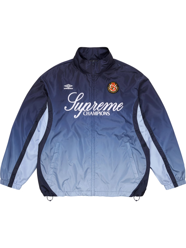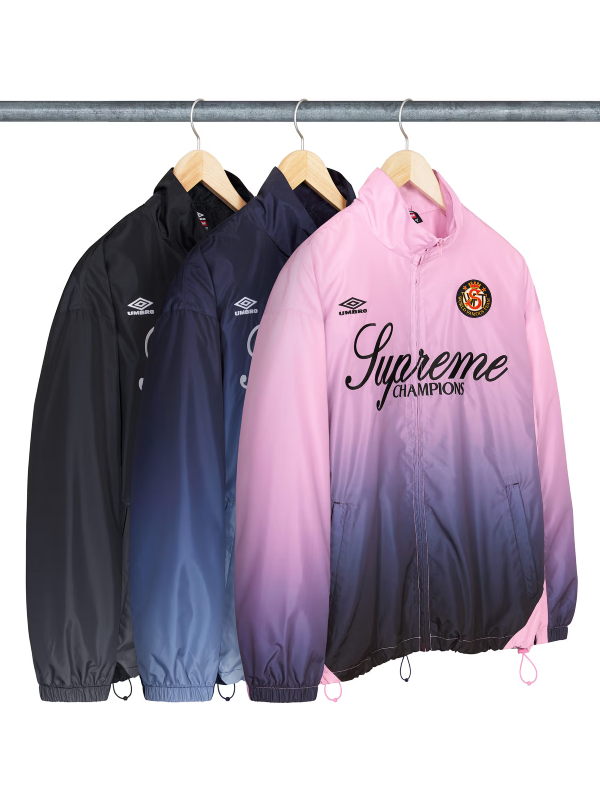 The Supreme Umbro Gradient Track Jacket is a fashionable and stylish jacket that provides a striking and new appearance. It suits all people who adore casual and sporty styles. The jacket is lightweight, comfortable, and can be worn throughout the day. The modern gradient design ensures that it stands out in the crowd. The jacket has a stand-up collar, zippered front, and elastic cuffs that fit tightly. It is available in bright colors: blue, pink, and black; thus an ideal jacket to wear on a daily basis, for travelling, or even socializing with friends.