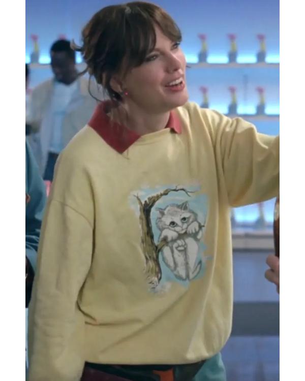 Opalite Music Video 2026 Taylor Swift Cat Print Yellow Crewneck Sweatshirt