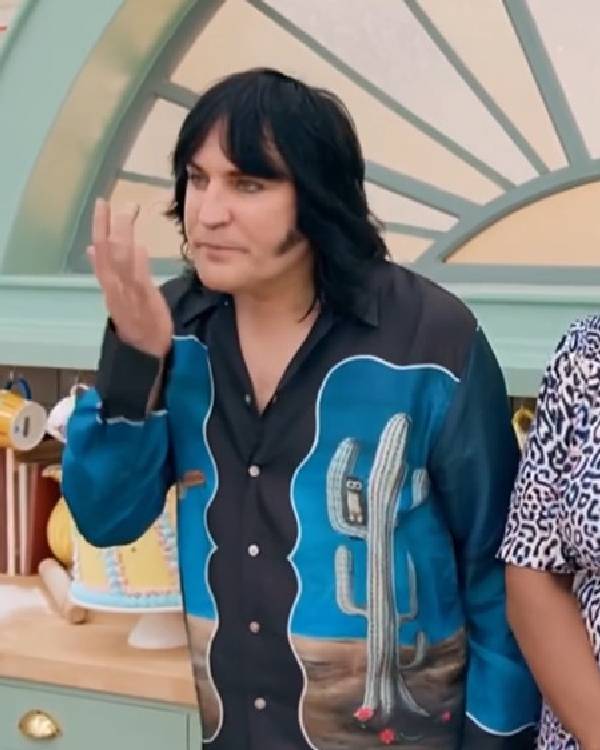 The Great British Bake Off Noel Fielding Black Blue Cactus Print Shirt