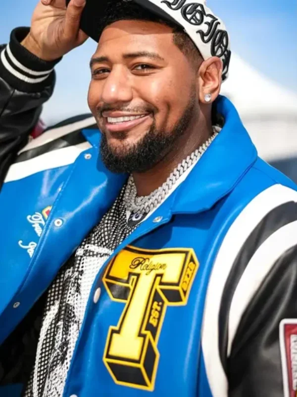 Recreation – The Rolling Loud Derrick Festival Rapper Milano Blue and Black Varsity Leather Jacket