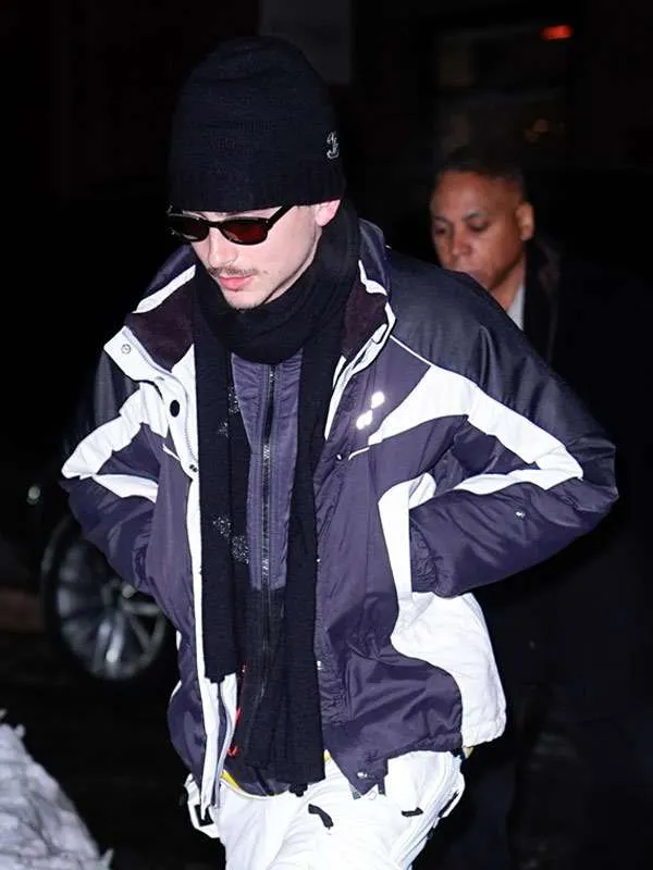 Timothee Chalamet New York City Last Night 2026 Blue and White Jacket