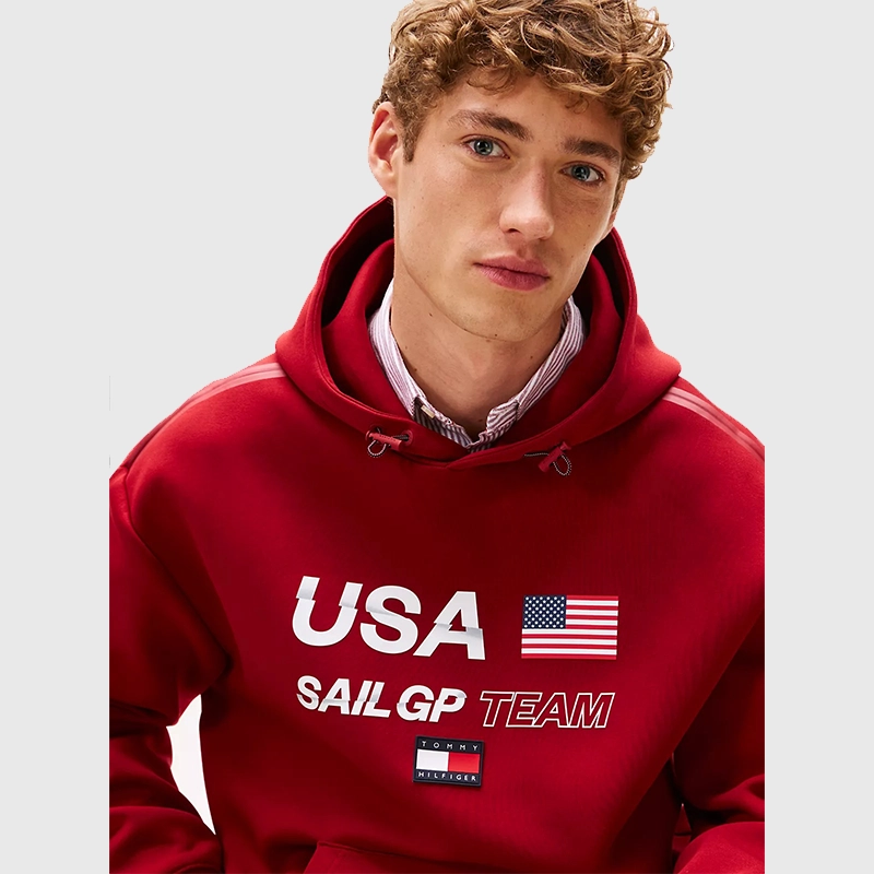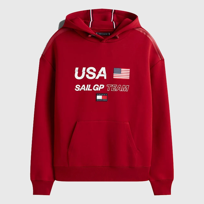 Recreation – Tommy Hilfiger USA SailGP Team Unisex Red & Navy Pullover Fleece Hoodie