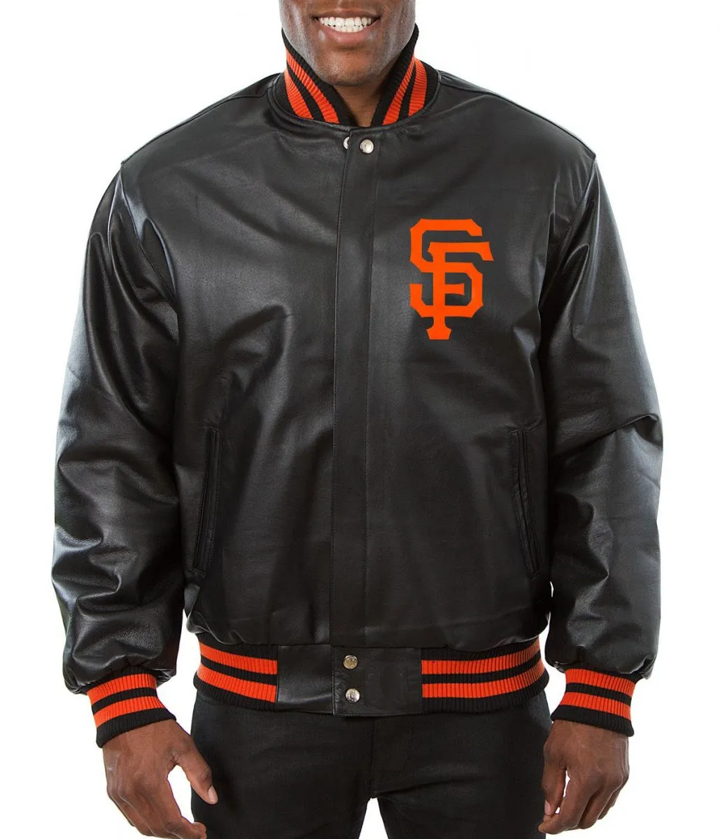 Giants San Francisco Black Leather Varsity Bomber Jacket