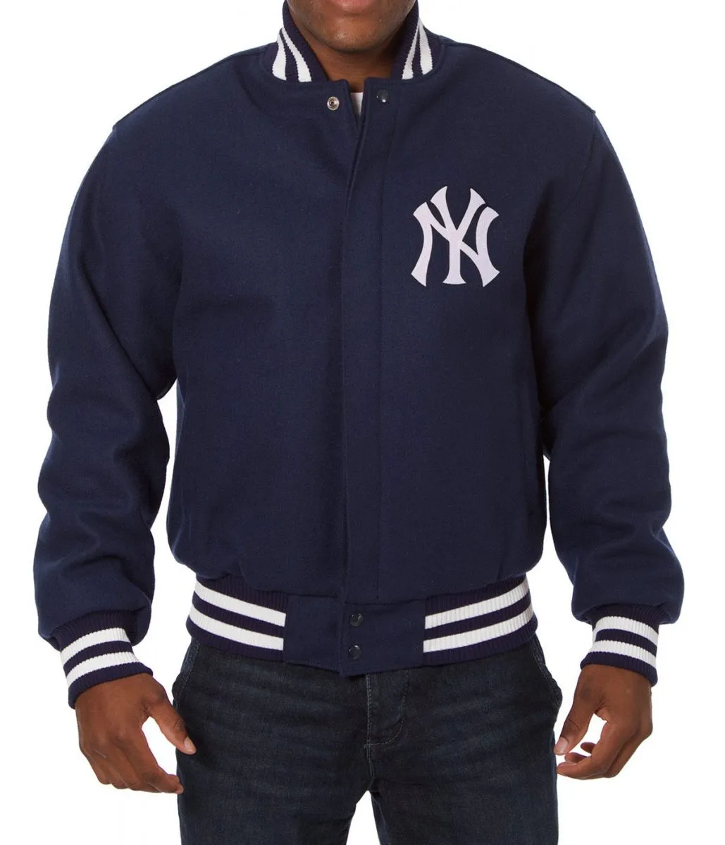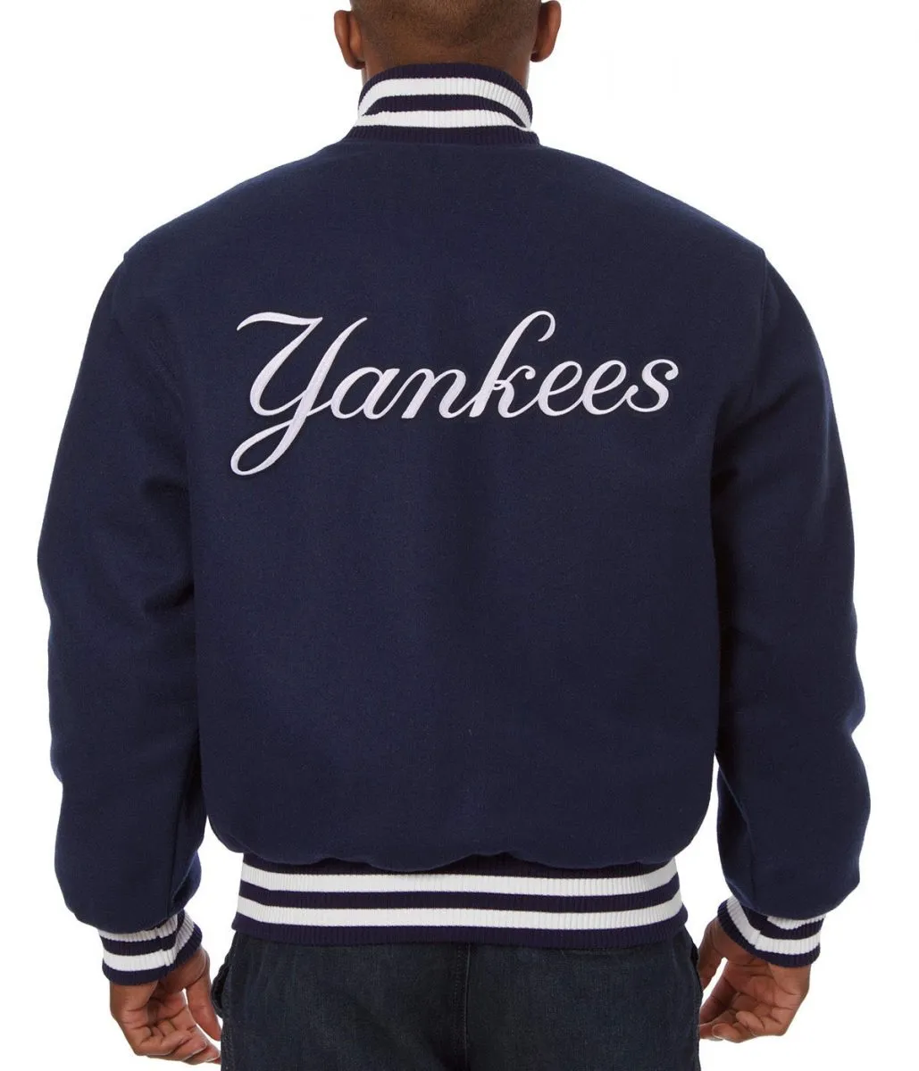 New York Embroidered Yankees Blue Wool Varsity Bomber Jacket
